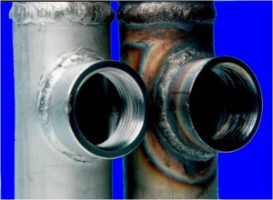 Links het gevolg van chloridehoudende lijm op RVS 304: chloride spanningscorrosie…..Meer